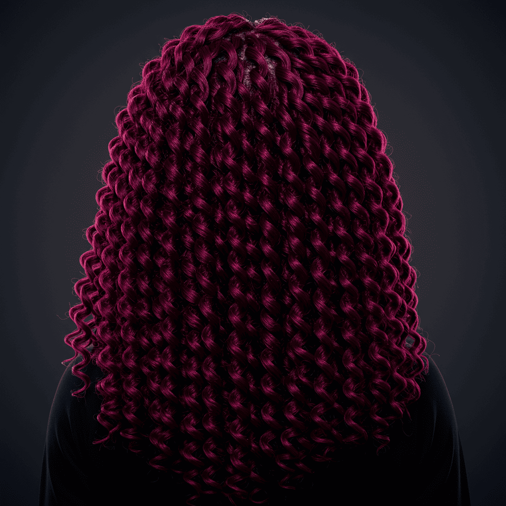 Trendy passion twists in burgundy, combining protection with style using the popular spring-twist hair texture.