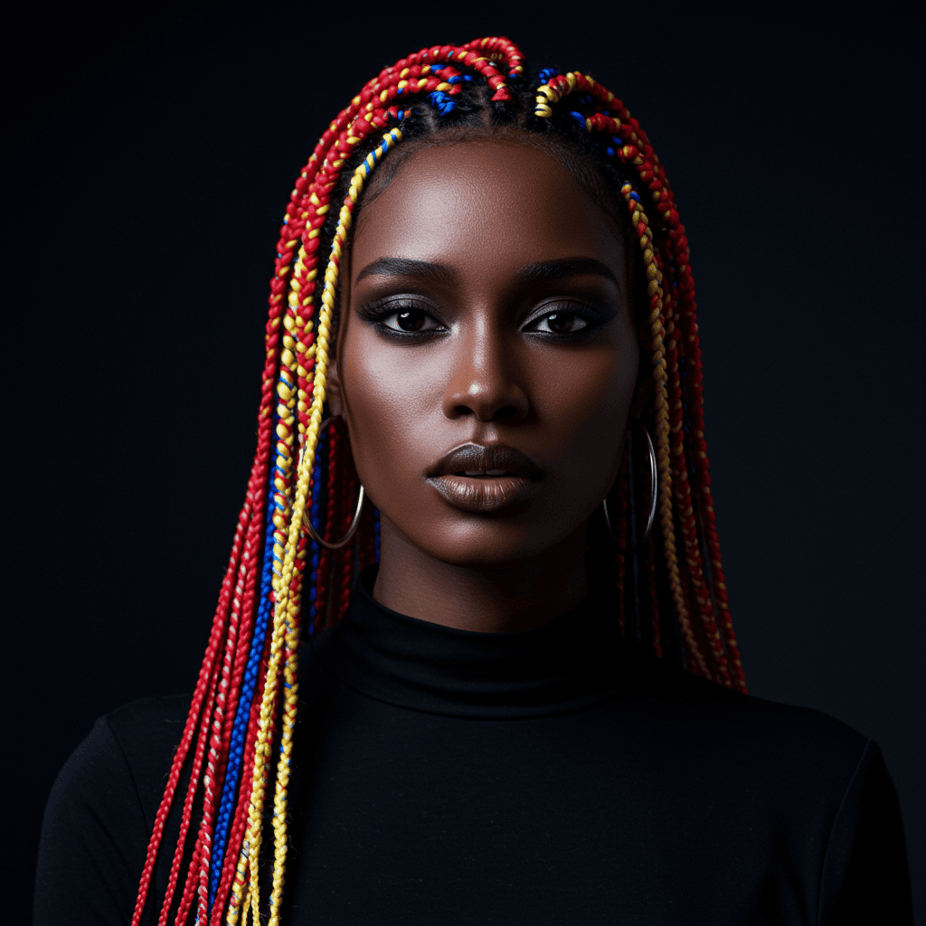 Creative yarn braids using colorful acrylic yarn for a bold, artistic protective style statement.