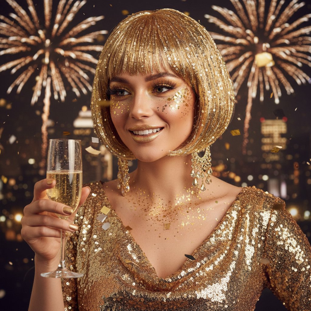 A glitzy gold bob that’s both chic and festive, making a bold statement as you step into the New Year.