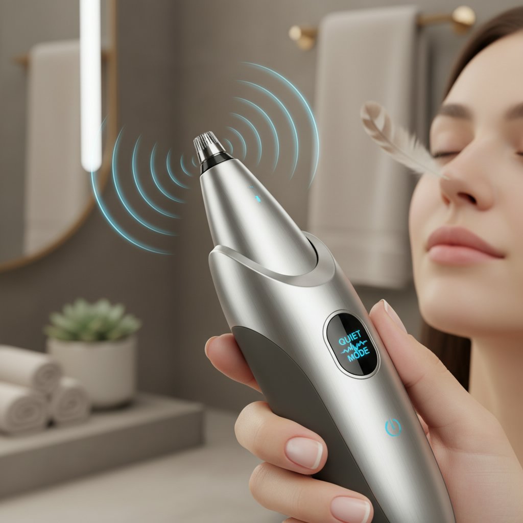 Highlighting a nose hair trimmer featuring silent motor technology for a quiet and discreet grooming session.