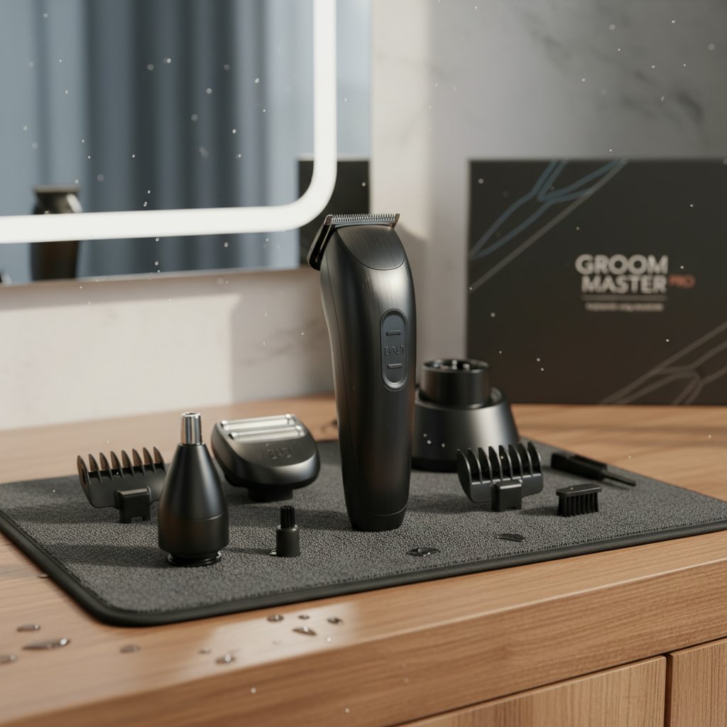 A multi-function grooming kit that includes a nose hair trimmer attachment, catering to all facial grooming needs.