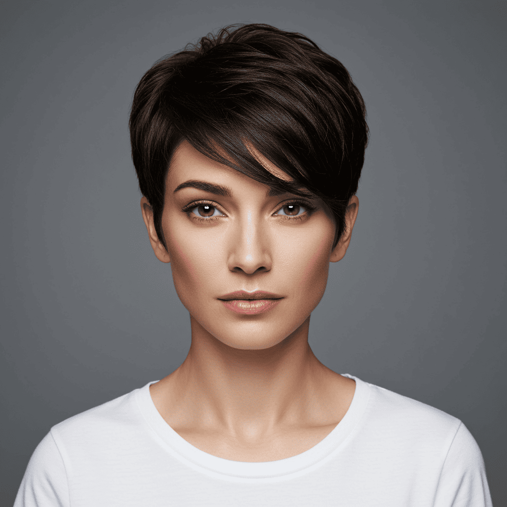 A fashion-forward pixie featuring micro bangs for a bold, editorial-inspired look.