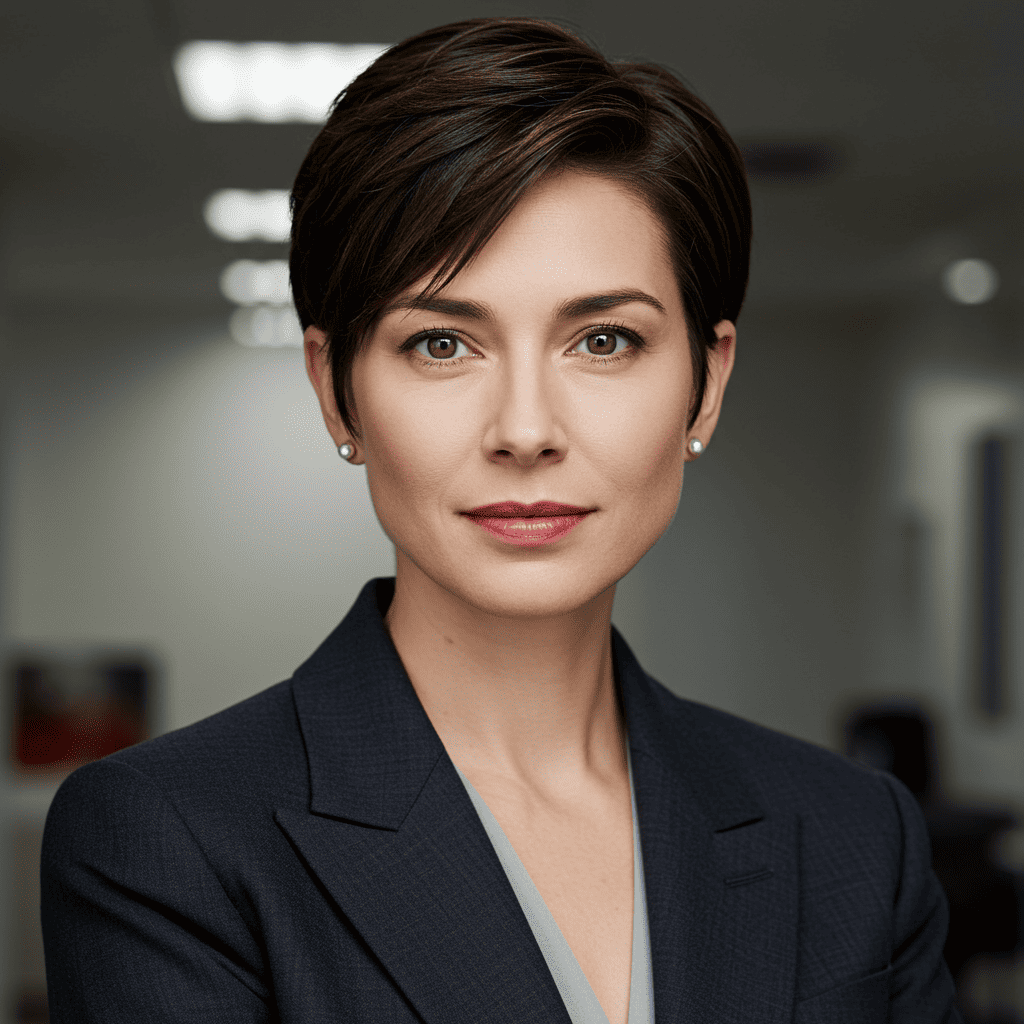 A polished, professional pixie perfect for corporate environments while maintaining style.