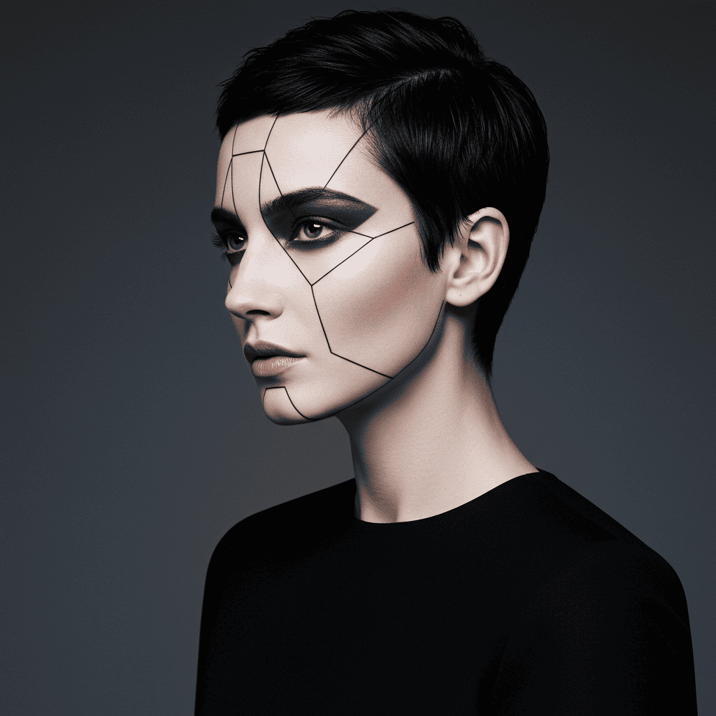 An architecturally-inspired pixie with precise geometric lines and angles for a modern art effect.