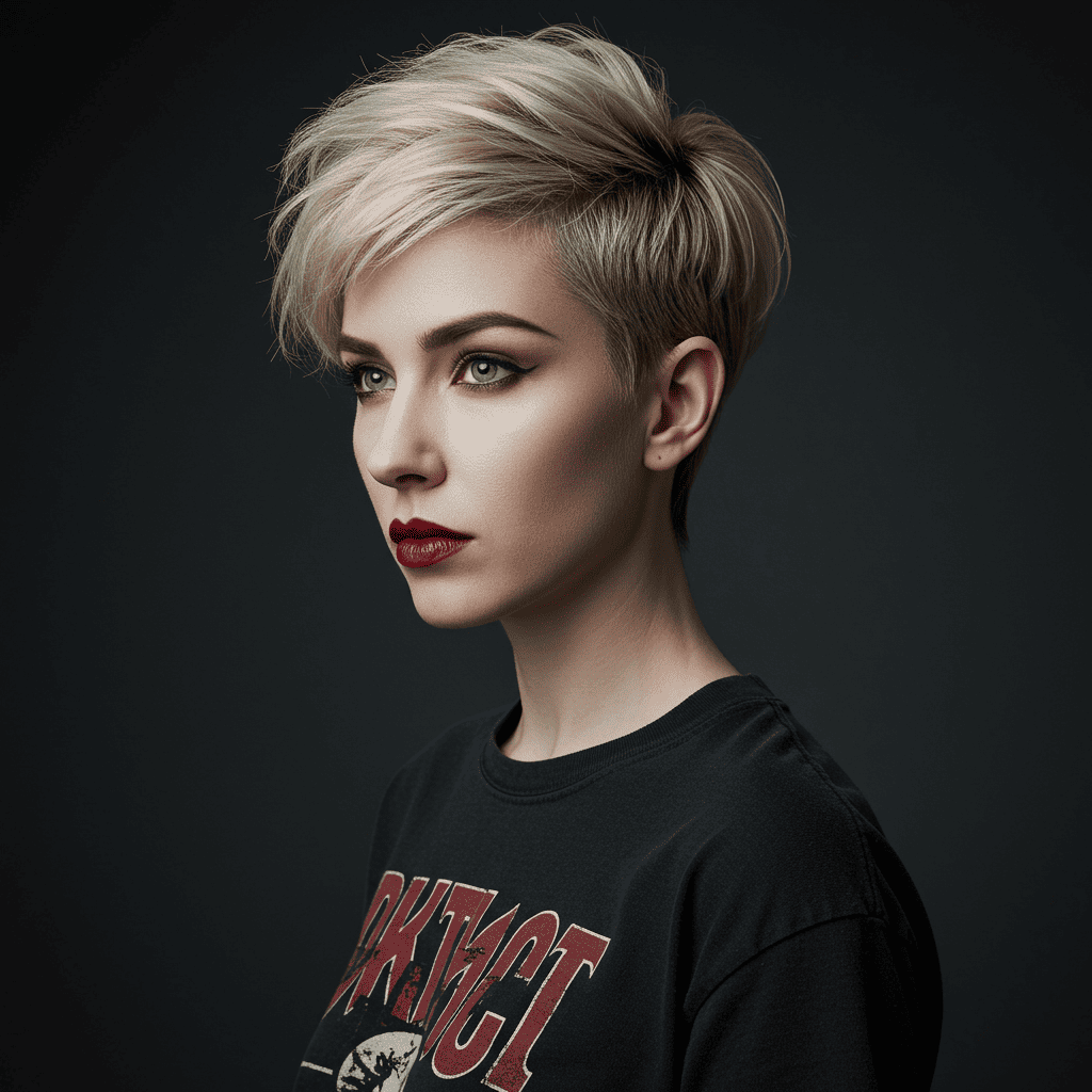 A statement-making pixie with a pronounced quiff in front adding height and retro-modern style.