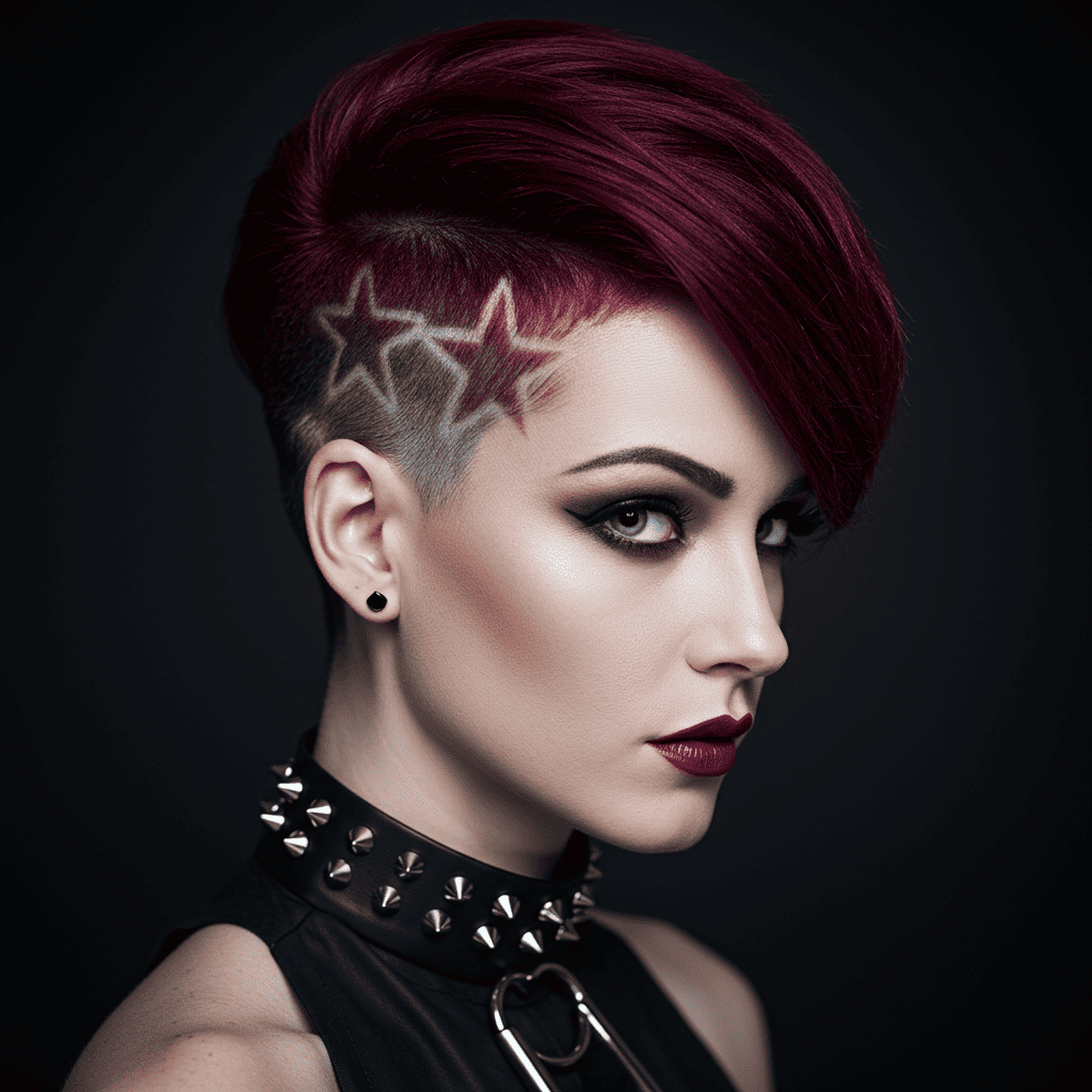 An artistic pixie featuring star patterns shaved into the undercut for a celestial-inspired look.