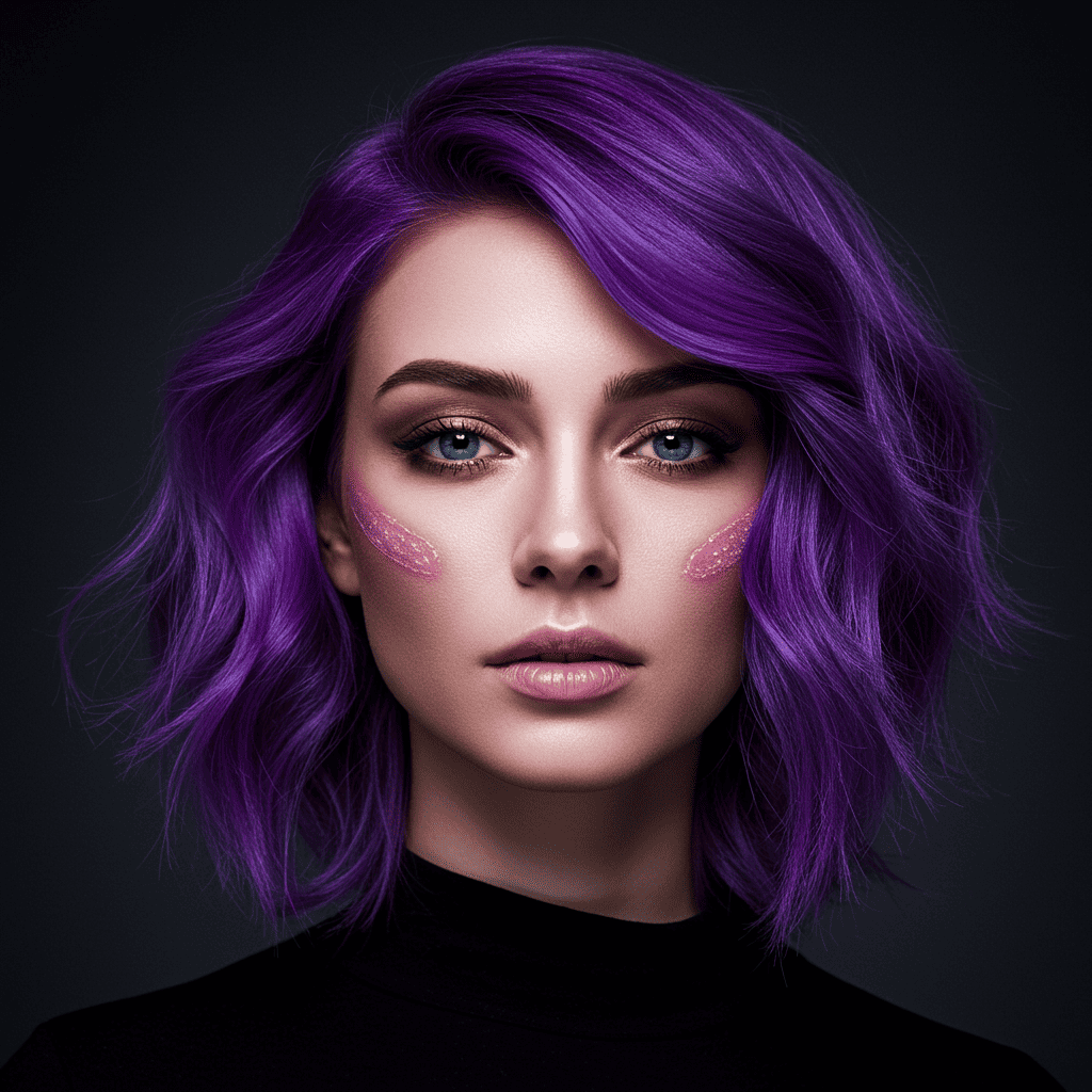 A rich violet-purple pixie making a bold color statement while maintaining wearable style.