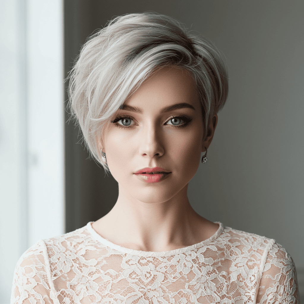 An ultra-light platinum pixie with icy silver tones for a striking, high-impact look.