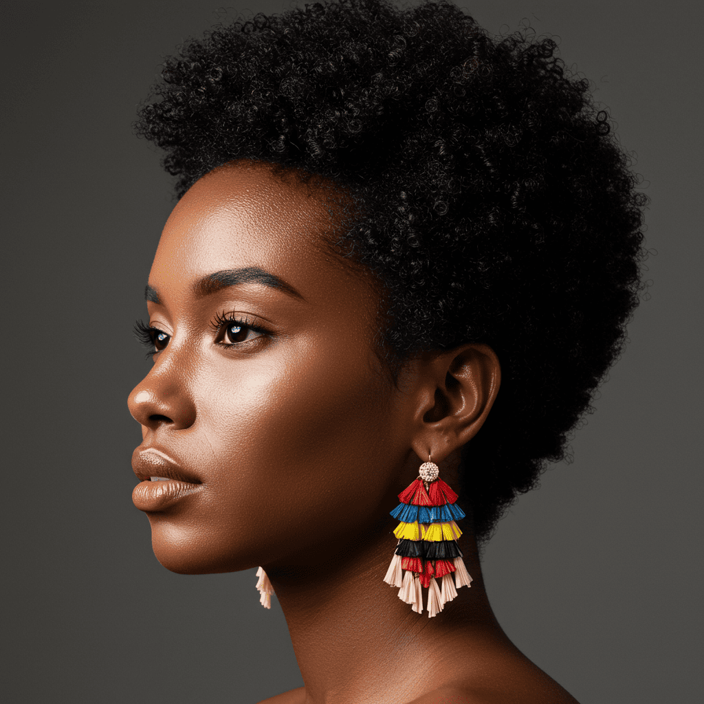 A natural afro pixie celebrating 4c texture in a shorter length, perfectly shaped and moisturized.