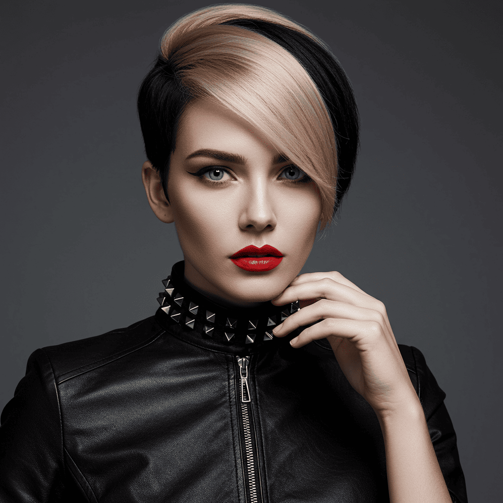 A punk-inspired mohawk pixie that makes a statement with its dramatic height difference and bold color combination.