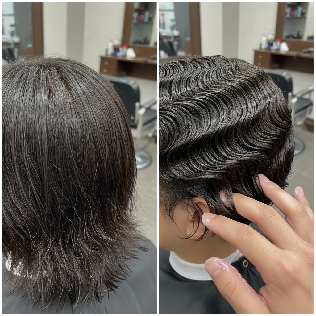 Before: Flat, lifeless waves. After: Defined, textured waves, demonstrating pomade's ability to enhance natural texture.