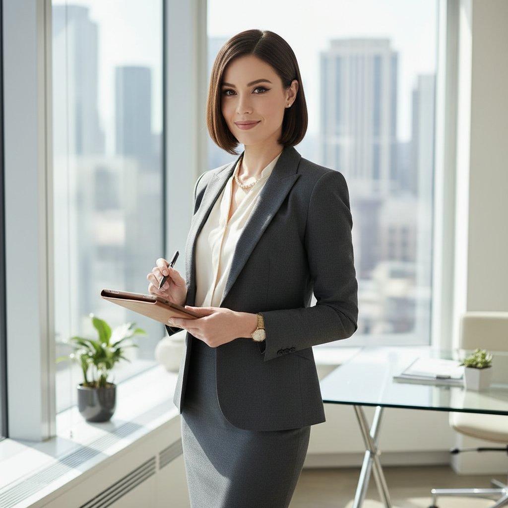 A classic bob cut provides a timeless look that is both stylish and suitable for the corporate world, blending sophistication with ease.