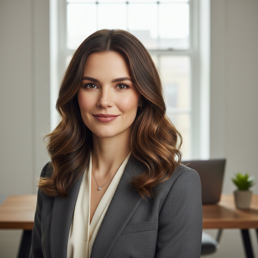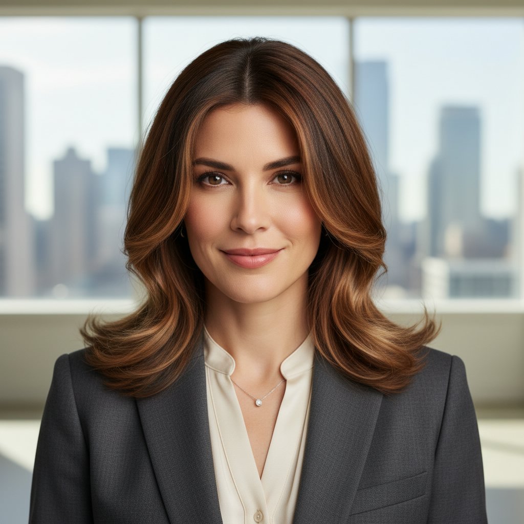 A layered mid-length hairstyle works well in corporate settings, providing versatility and a soft, approachable look.
