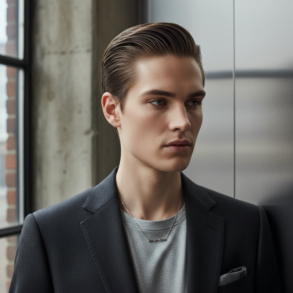 The side part with a slicked-back style is ideal for those looking to merge classic professionalism with contemporary sleekness.