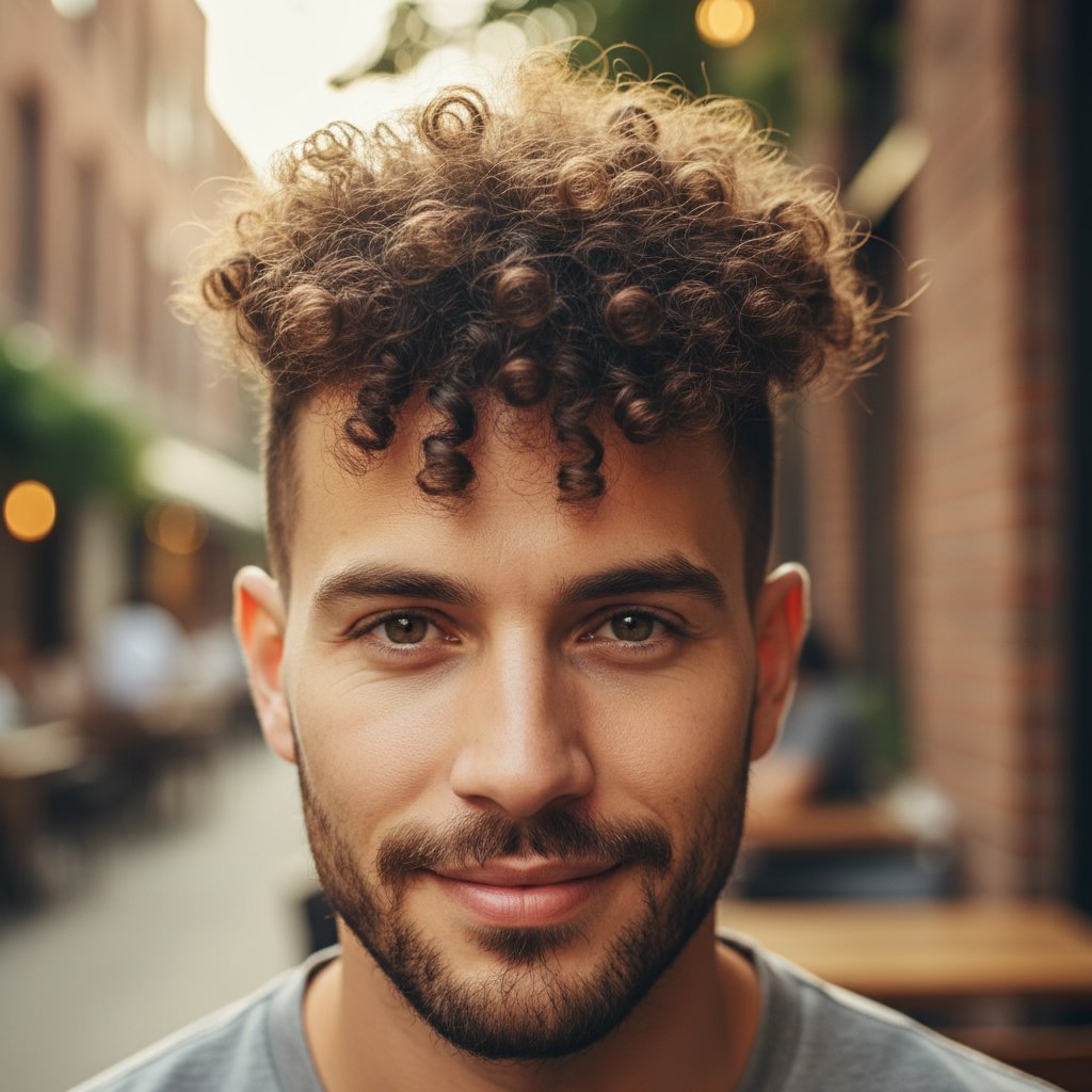 Embracing natural curls, this quiff variation features an undercut to enhance volume and texture, offering a bold, dynamic look.