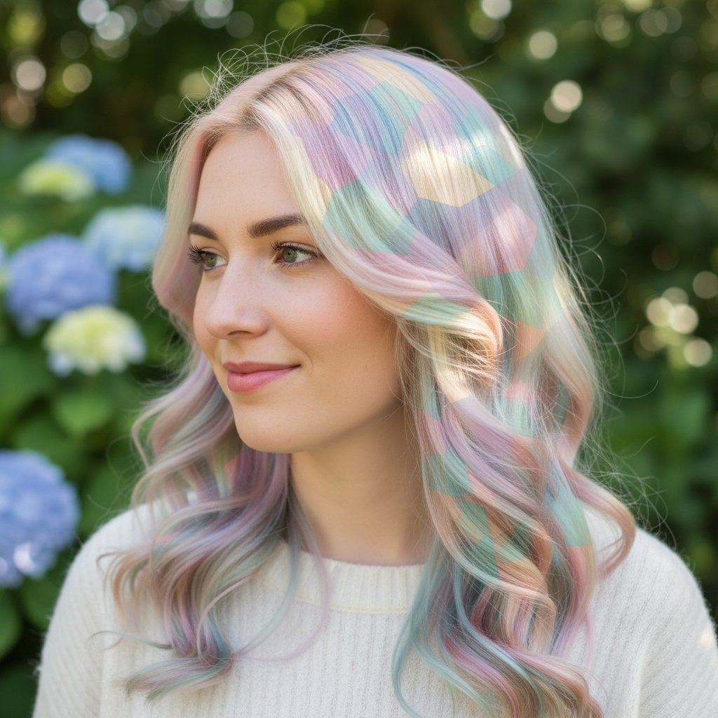 Soft pastel shades meld together in a prism blend, creating a dreamy, ethereal look that's as magical as it is chic.