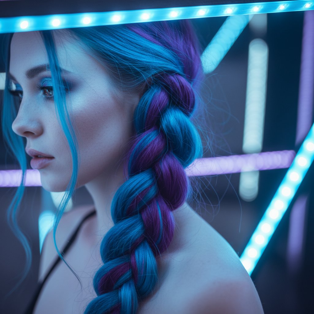 Electric Blue and Purple Plait