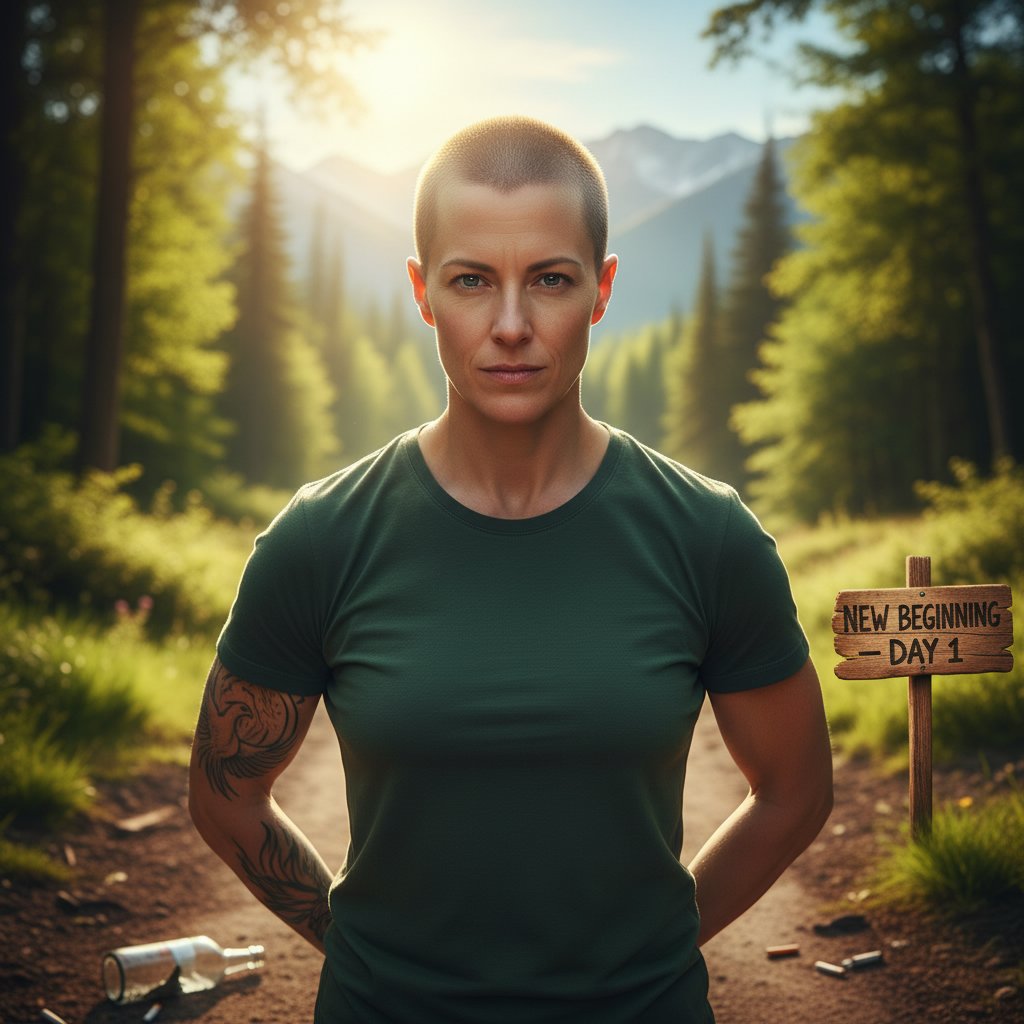 A shaved head symbolizing the act of shedding past burdens and starting anew, embodying freedom and the first steps towards recovery.