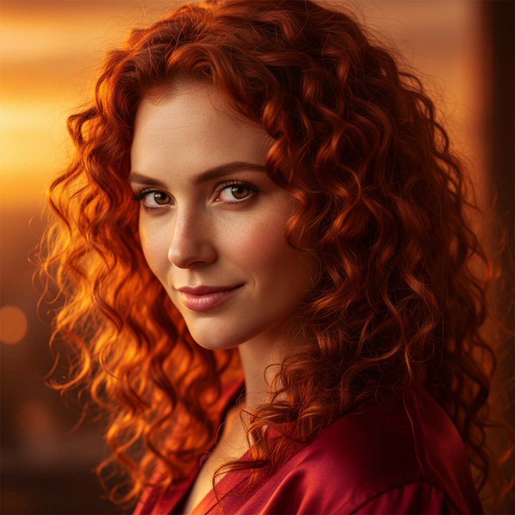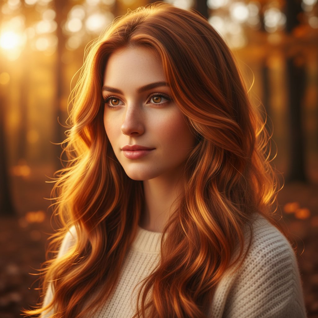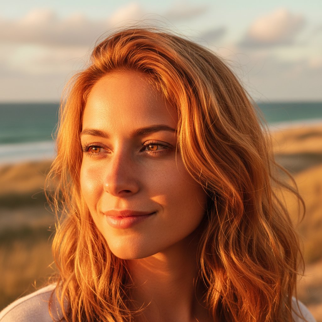 Sunkissed ginger locks glow with the light of the setting sun, offering a soft yet vibrant hue that's refreshingly unique.