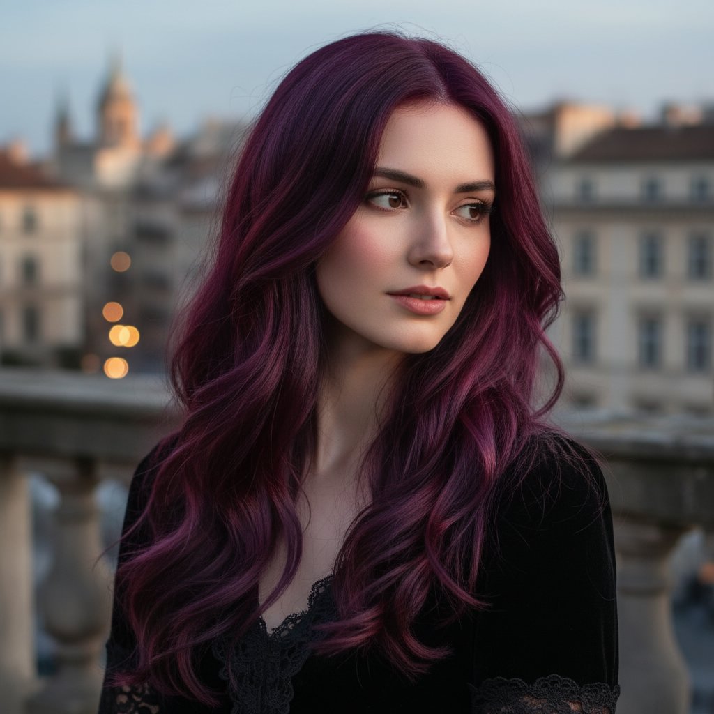 Burgundy wine tones mix the depth of red with purple hues for a richly romantic and alluring hair color.