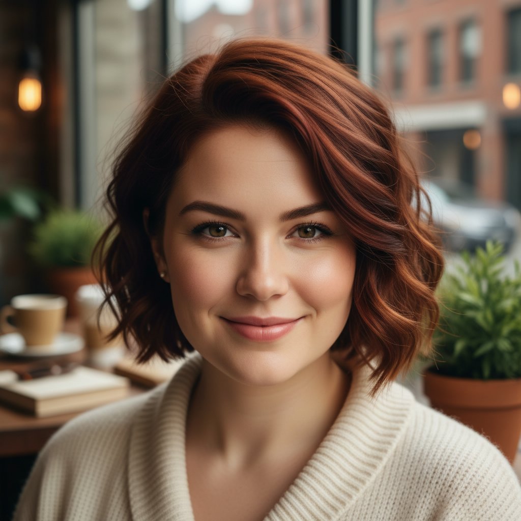 Adding volume near the crown with a shoulder-length cut can visually lift and elongate a round face.