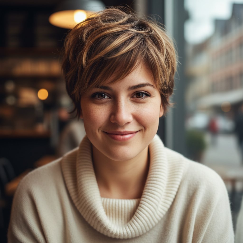 A pixie cut with added texture on top can help elongate the appearance of the face, offering a chic solution for round-faced beauties.
