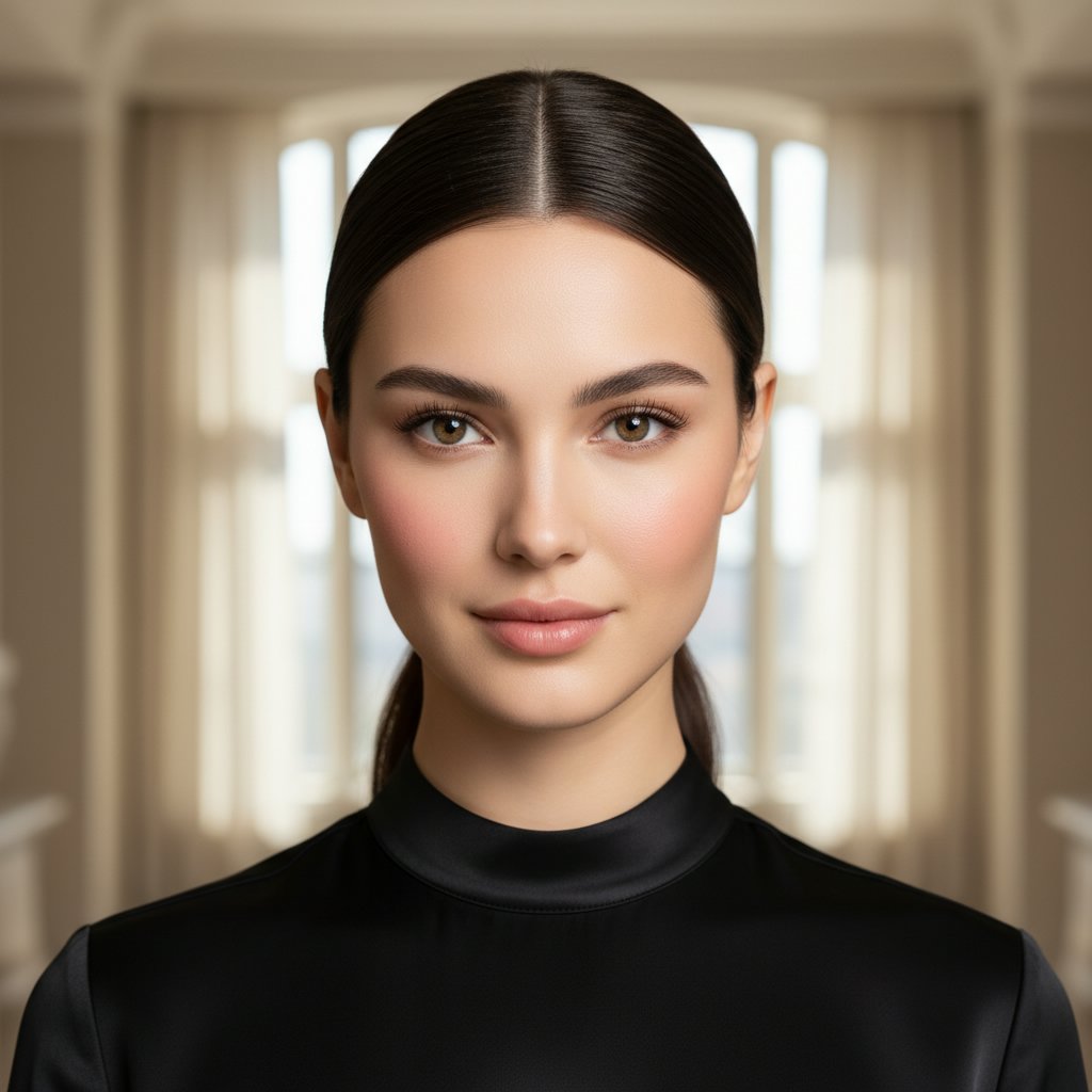 A sleek hairstyle with a middle part can help divide the face and give the illusion of a longer, slimmer shape.