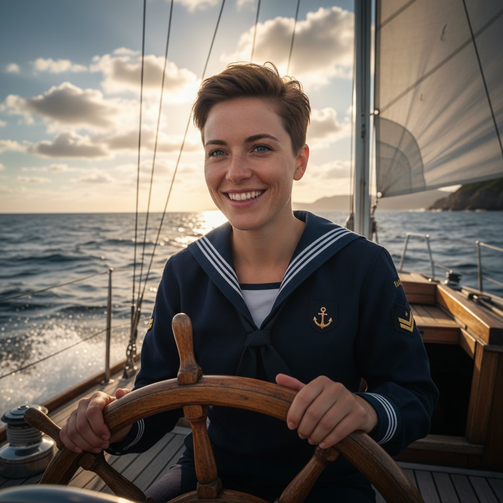 A sturdy bun, reminiscent of nautical knots, ensures your hair stays in place, even during the most vigorous of maneuvers.