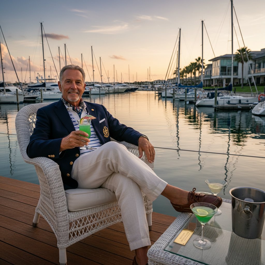 A sophisticated twist-up style adorned with nautical accessories speaks of elegance and readiness for any upscale yacht club gathering.