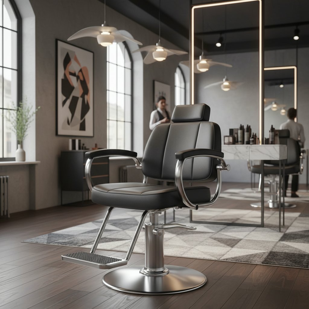 Featuring a compact salon chair that maximizes space without sacrificing style or comfort, ideal for smaller salons.