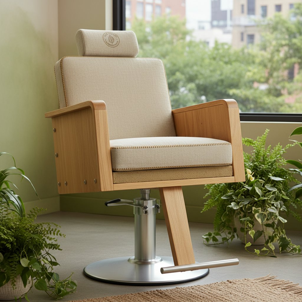 Highlighting an eco-friendly salon chair made from sustainable materials, for salons committed to green practices.