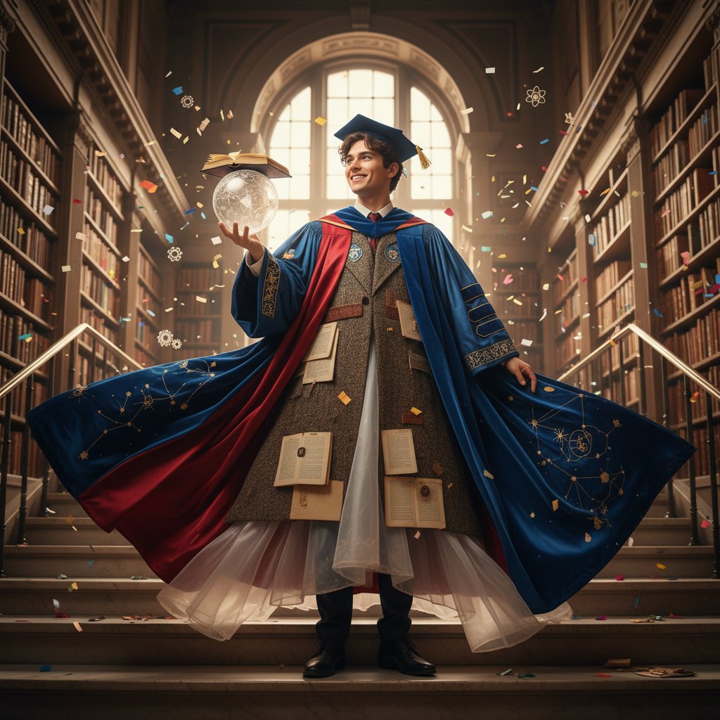 Voluminous layers that add depth and dimension, symbolizing the layered journey of academic pursuit and success.