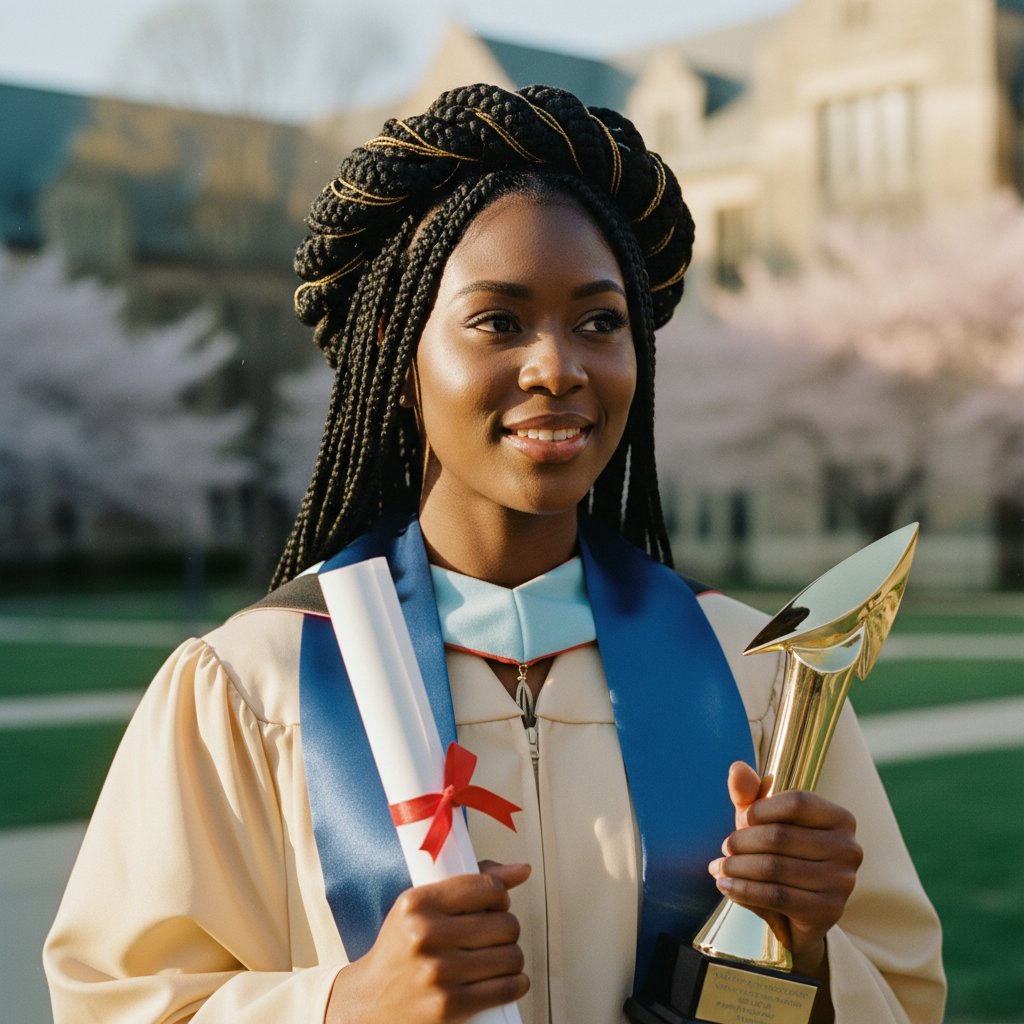 A bold braided crown, symbolizing strength and wisdom, ideal for a scholar stepping into a future full of promise.