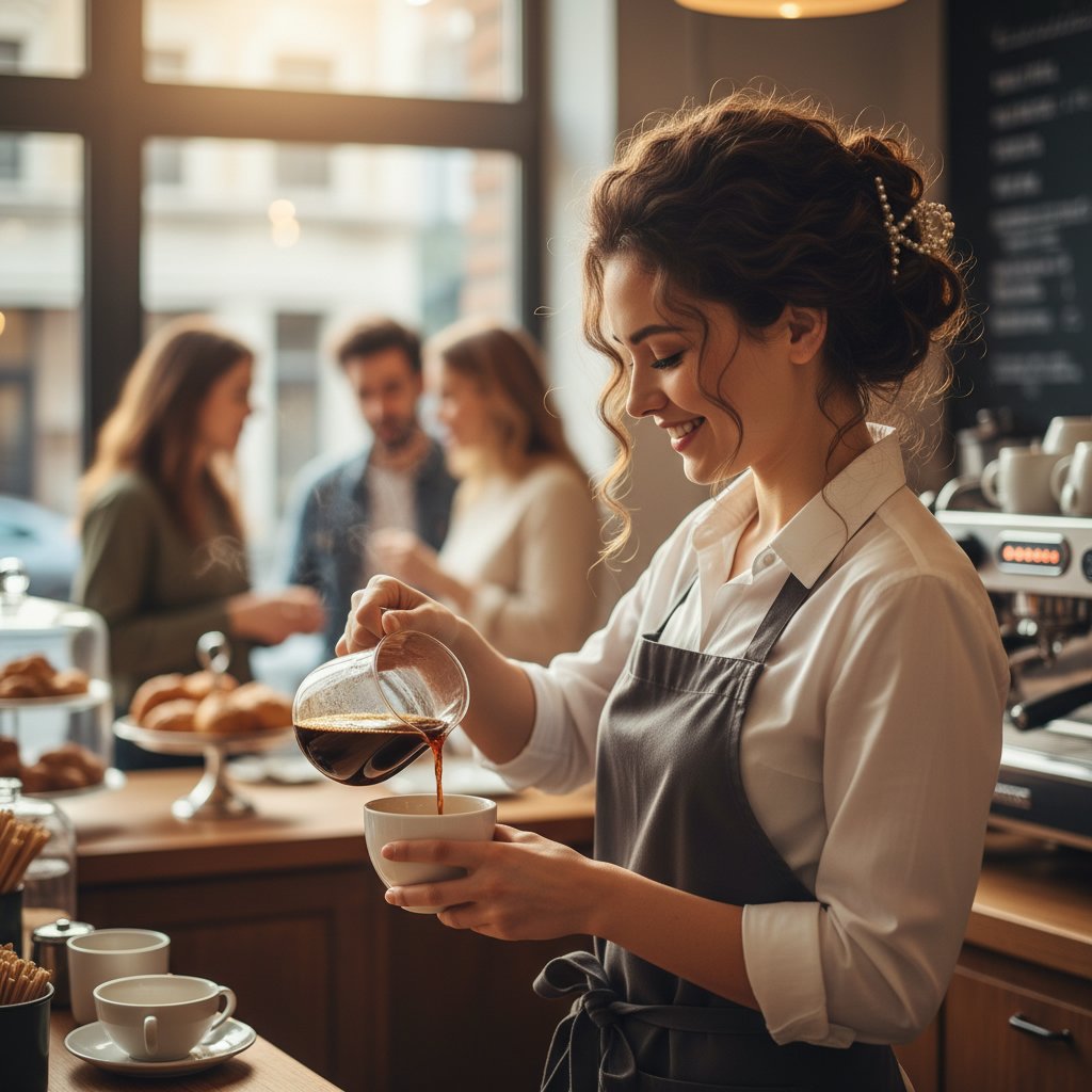 Hair pulled back with a twist combines practicality with a sense of creativity, ideal for servers in boutique cafes.