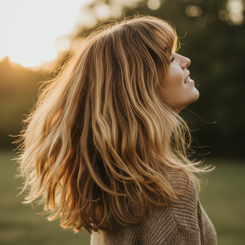 The long layered shag combines cascading layers with a lived-in look, ideal for those seeking movement and volume in longer hair.