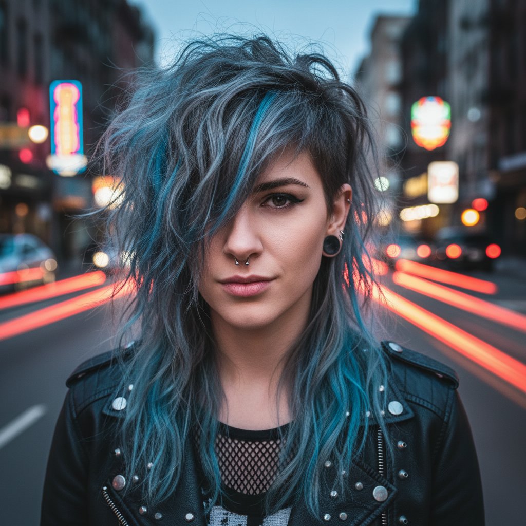 The asymmetrical shag adds an avant-garde twist, with uneven layers that create a unique, edgy profile.