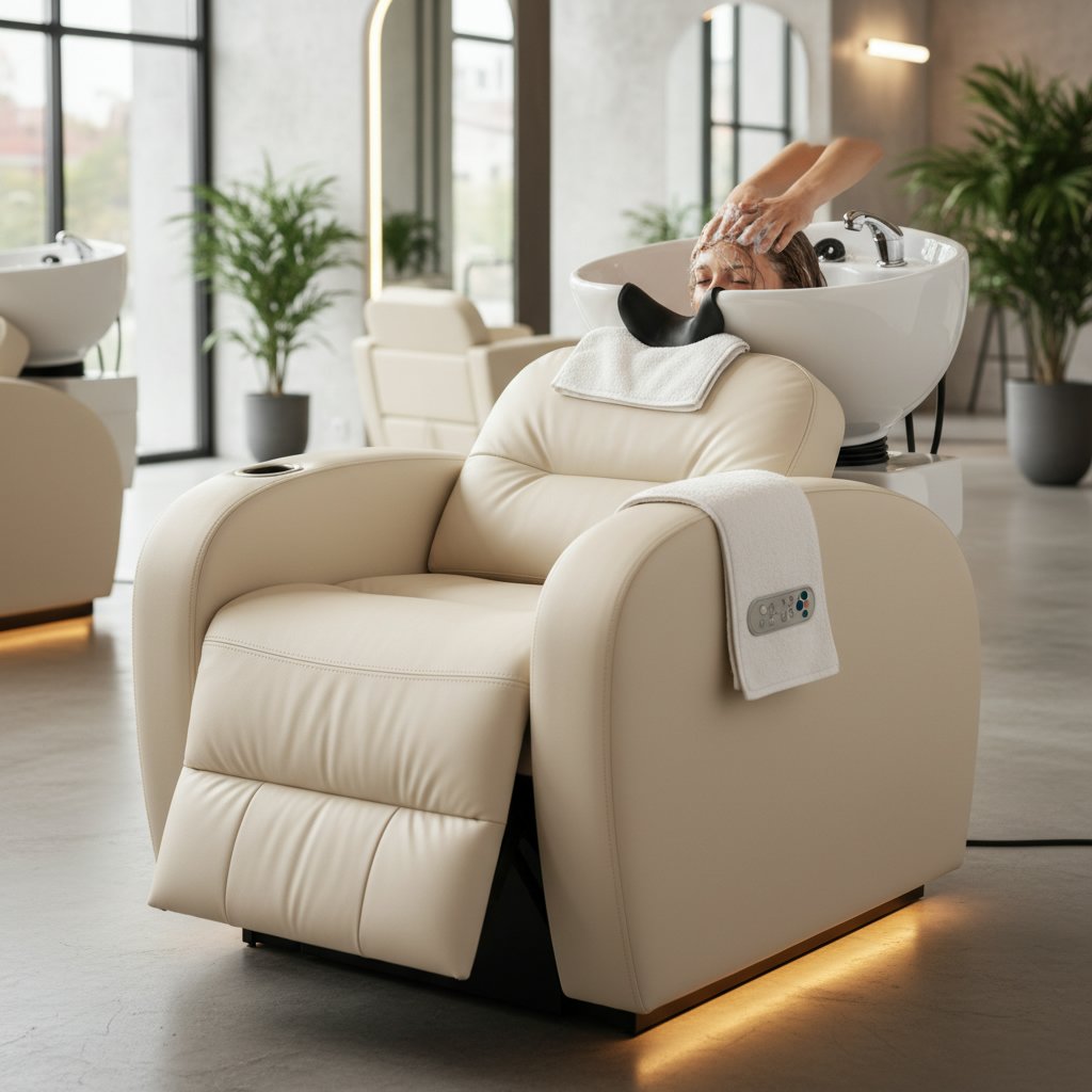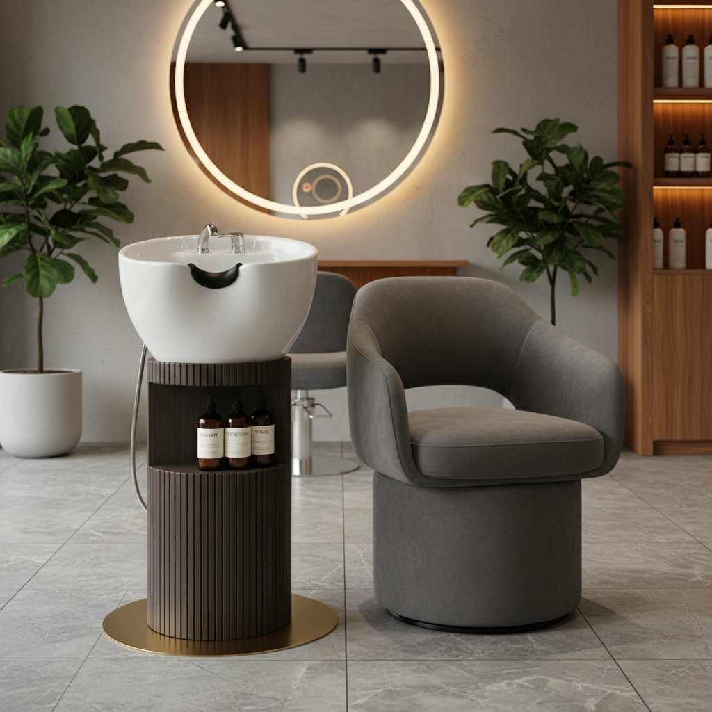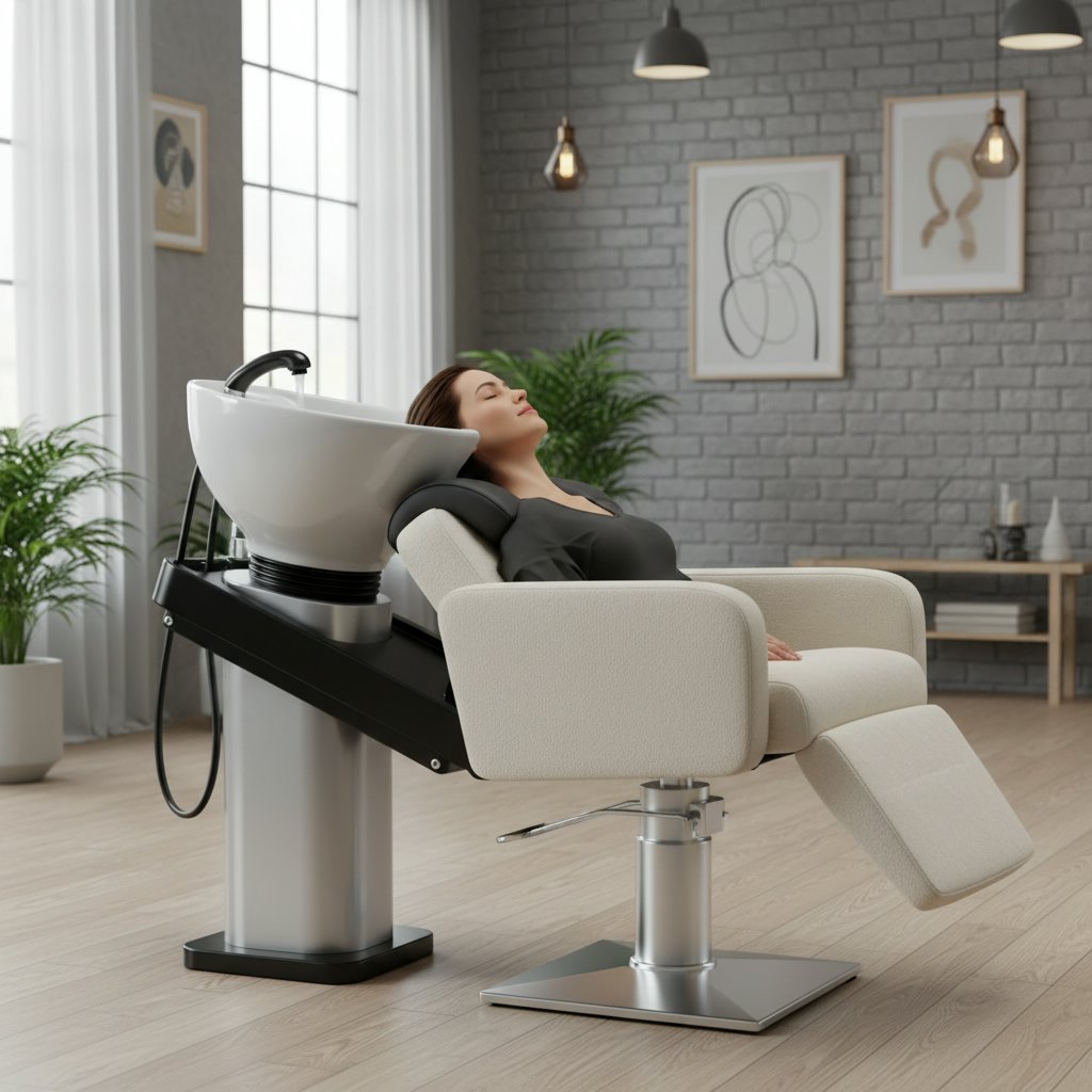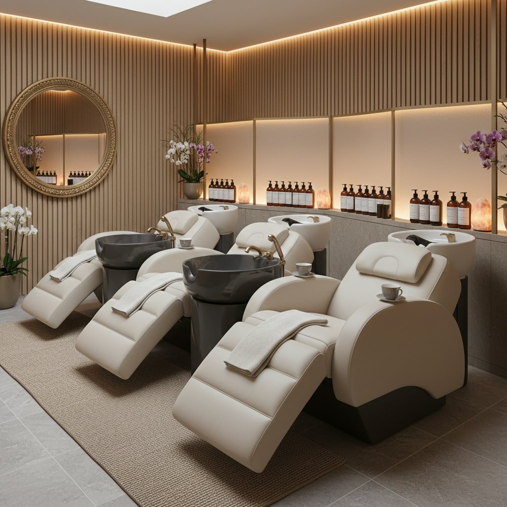 A luxury spa shampoo station that combines sleek design with unmatched comfort, offering clients a premium washing experience.