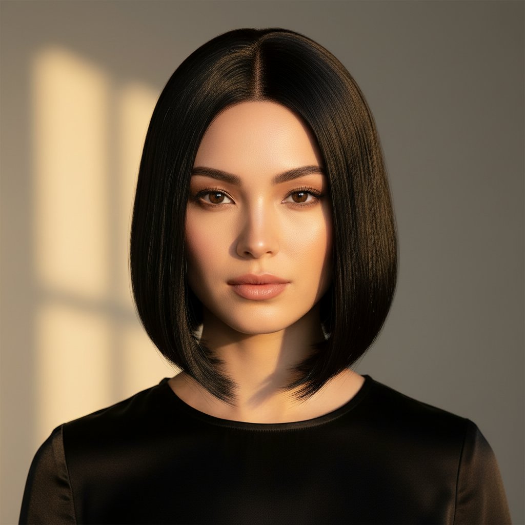 A blunt bob wig defines chic, featuring a sharp, clean cut that falls just above the shoulders, making a bold fashion statement.