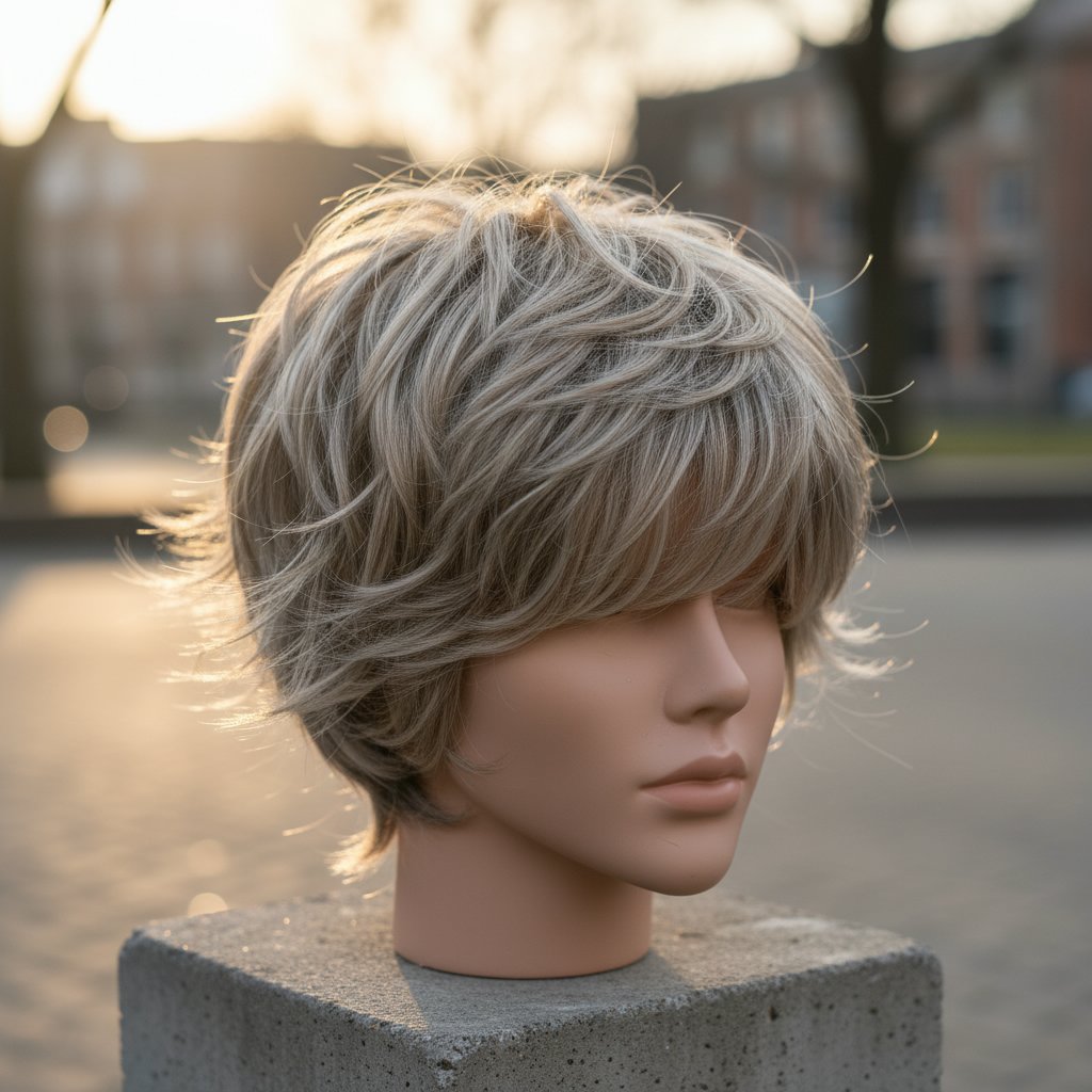 This textured pixie wig brings a playful charm, featuring short, choppy layers that add volume and movement for a dynamic look.