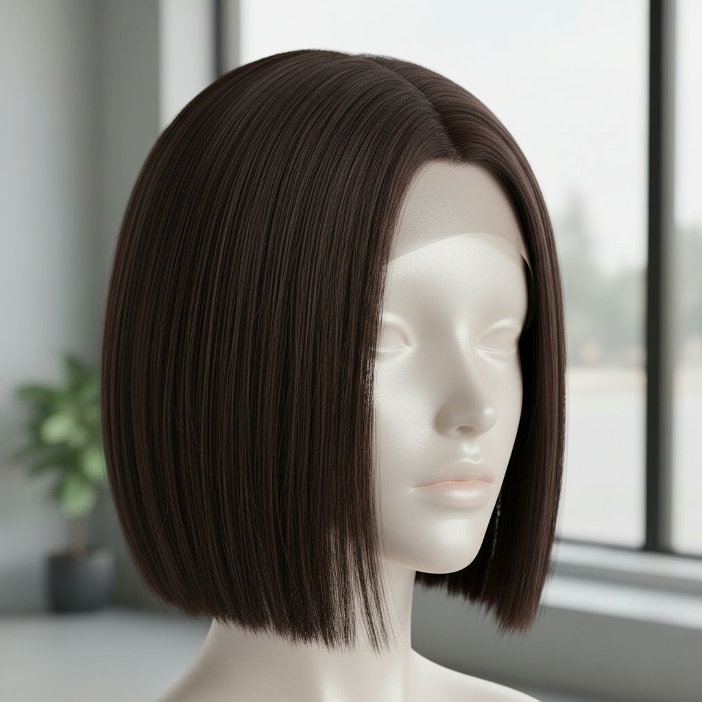 The sleek side-part bob wig offers a minimalist aesthetic, with a deep side part that emphasizes the sharpness of the cut.
