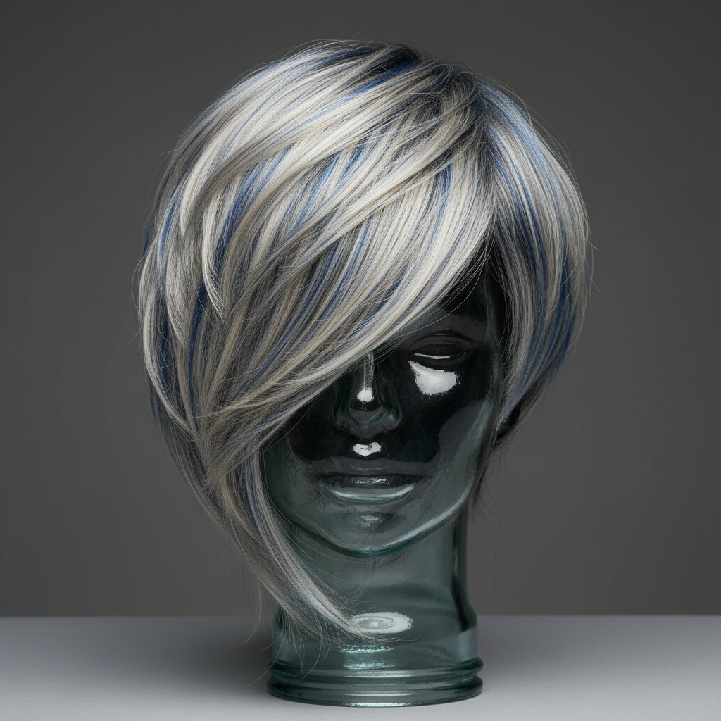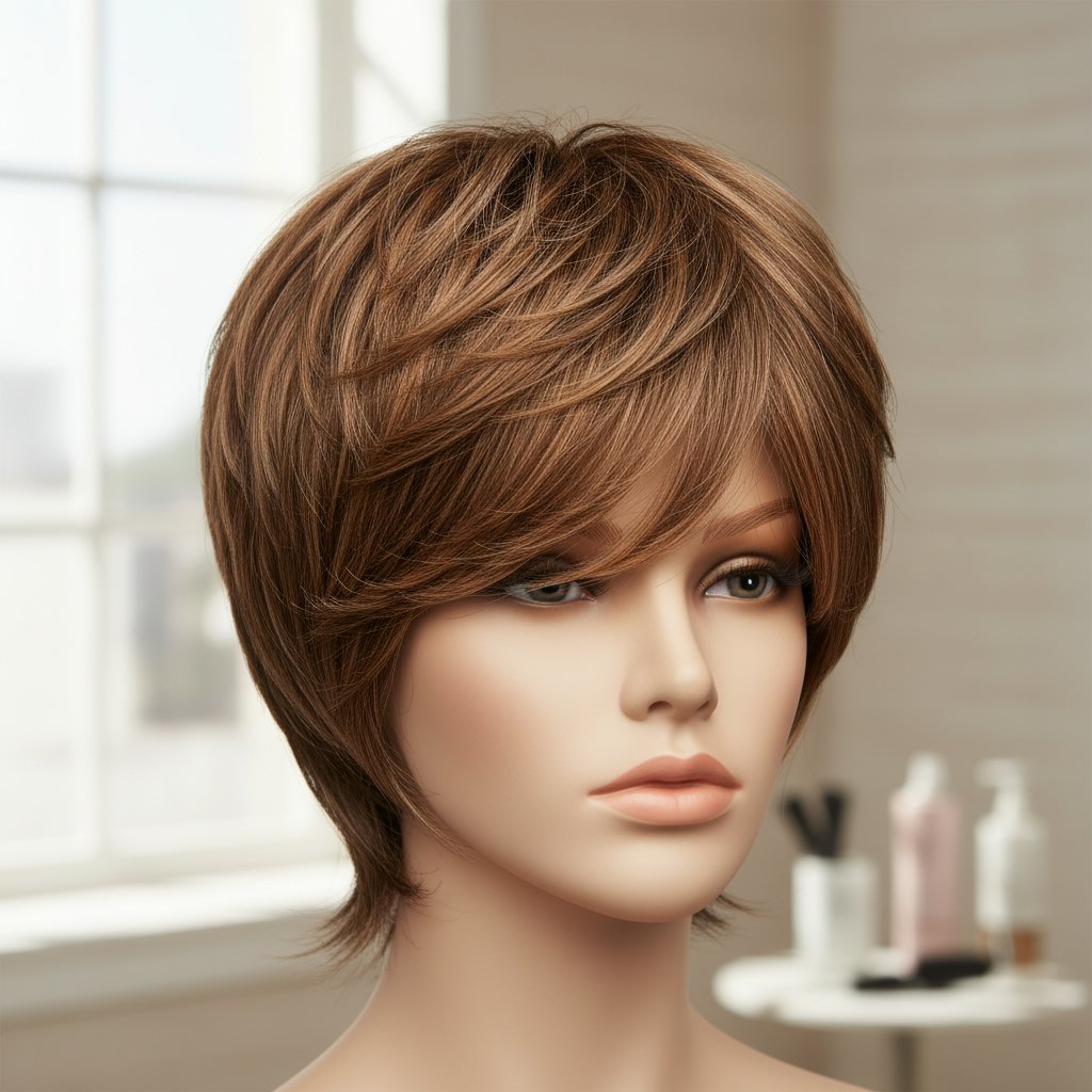 An asymmetrical pixie wig brings an edgy twist to short hair, with one side longer than the other for a modern, chic look.