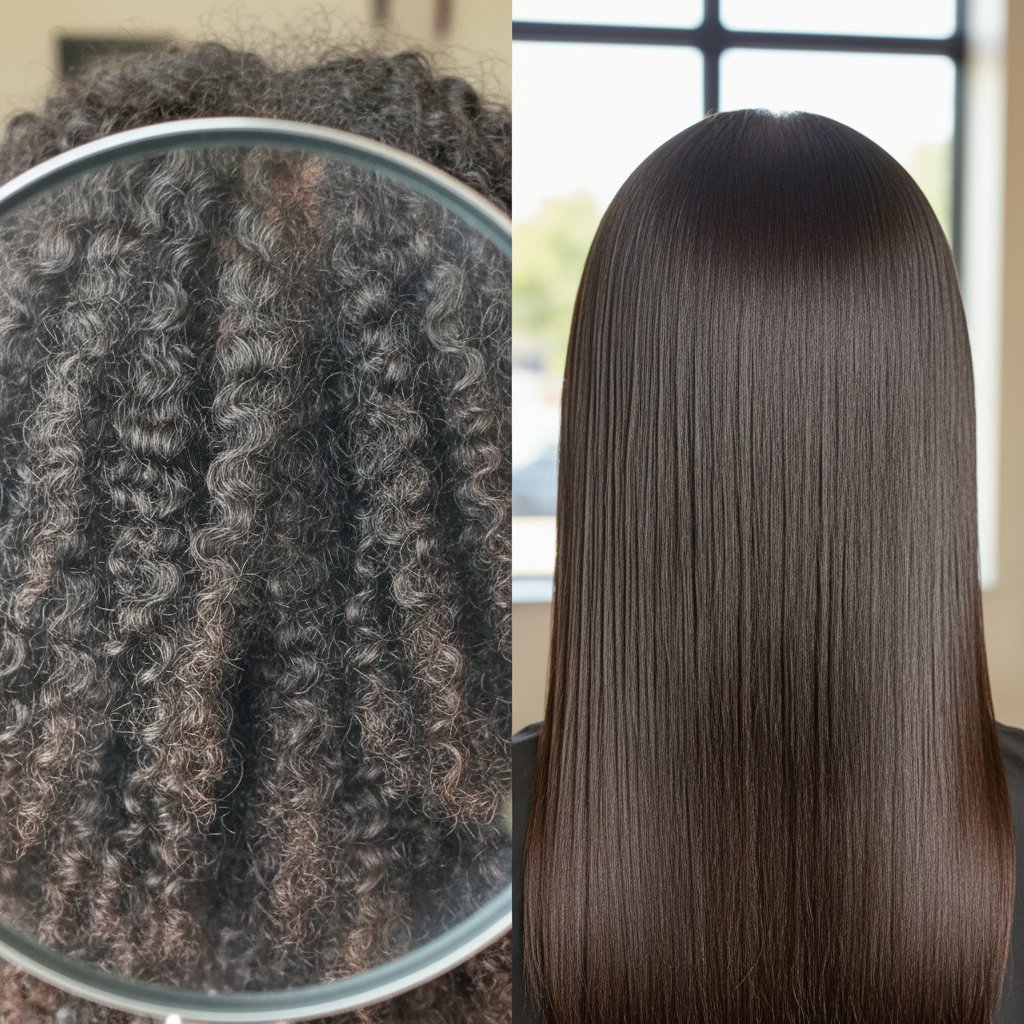 A silk press, when done professionally, can smooth hair and temporarily mend split ends, leaving locks sleek and lustrous.