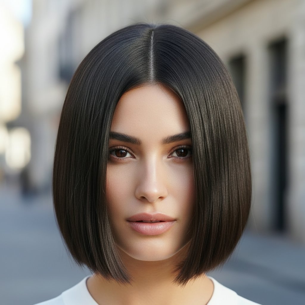 The classic straight bob, cut at chin-length, offers a timeless look that frames the face beautifully, emphasizing symmetry and precision.
