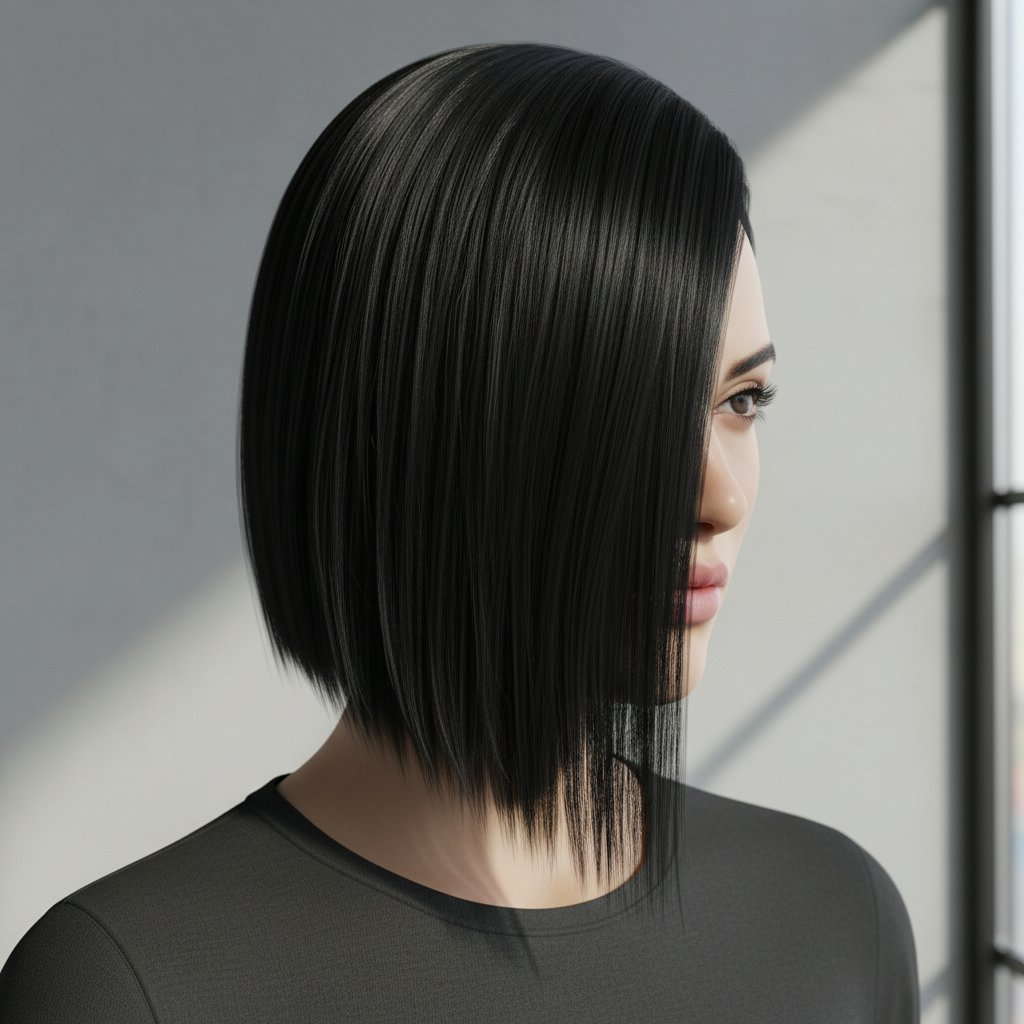 An asymmetrical cut in straight hair makes a bold statement, with one side longer than the other for a unique, eye-catching look.