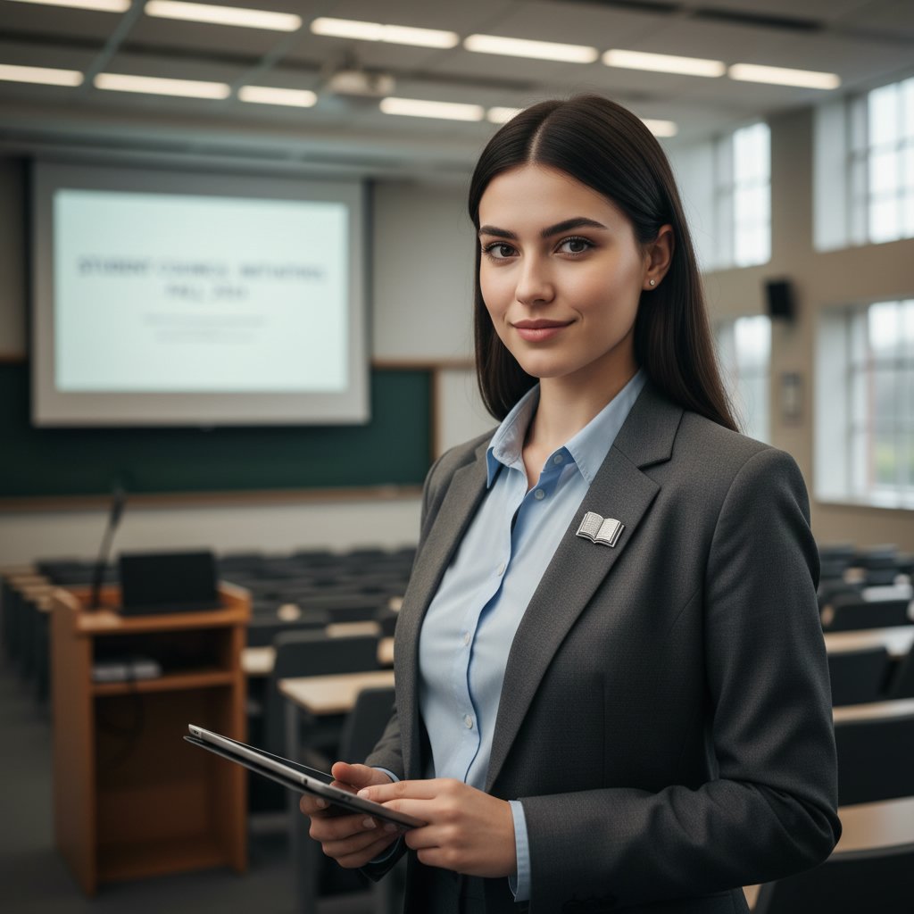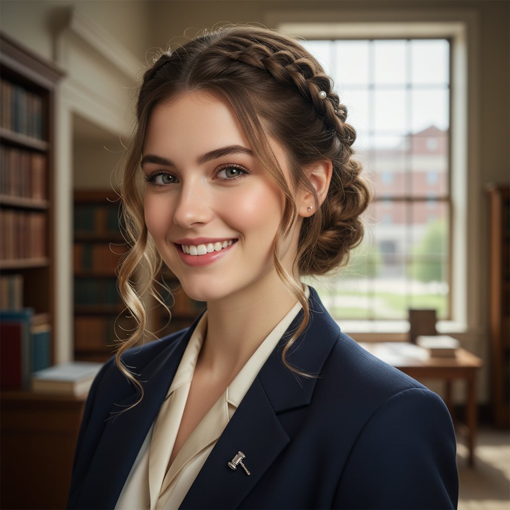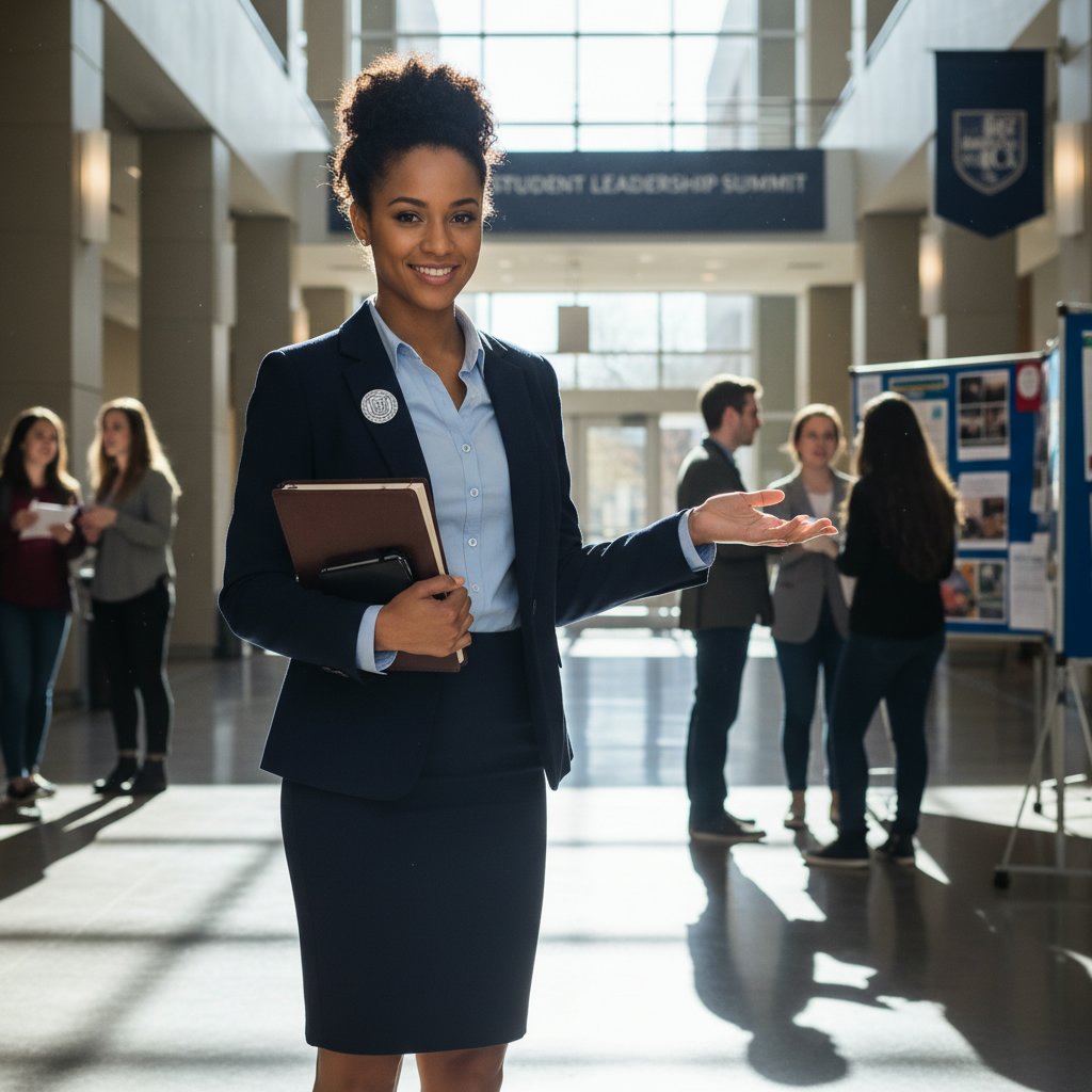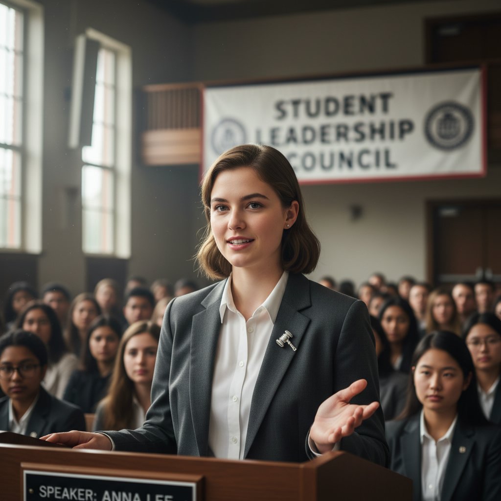 A commanding high bun, not only practical for long hours of meetings but also symbolizes the elegance and authority of a student leader.