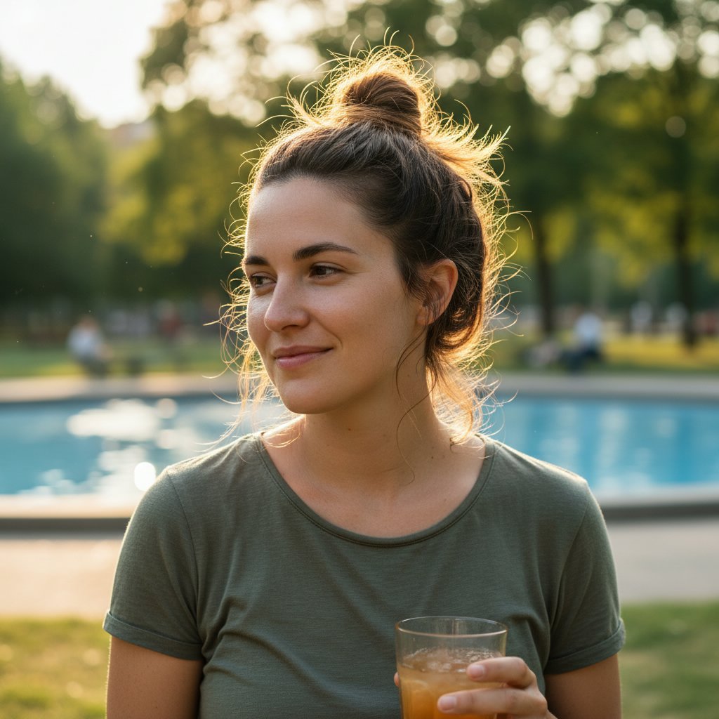 The messy top knot isn’t just a style statement; it’s a cool, comfortable choice for sweltering days, keeping your hair off your neck and face.