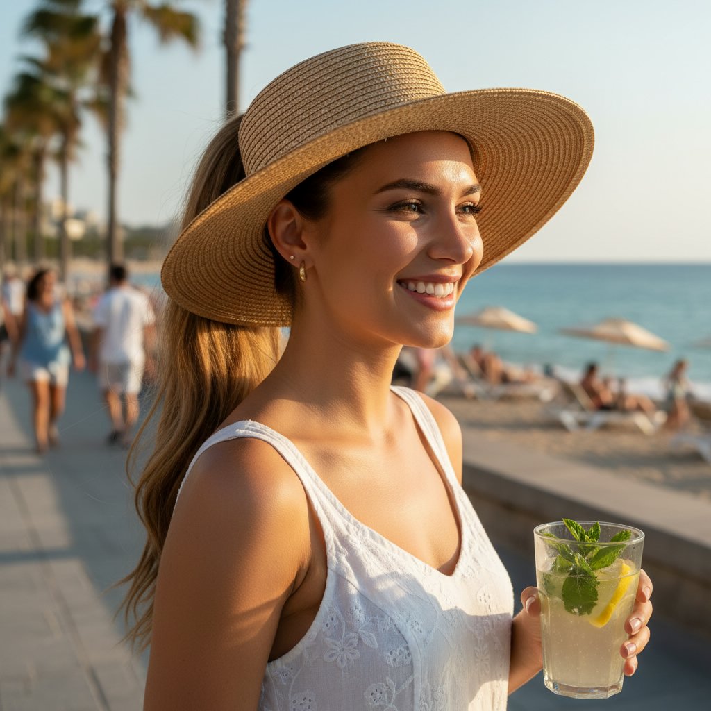 A sleek high ponytail is both practical and polished, offering a heat-proof hairstyle that transitions seamlessly from a beach day to an evening out.