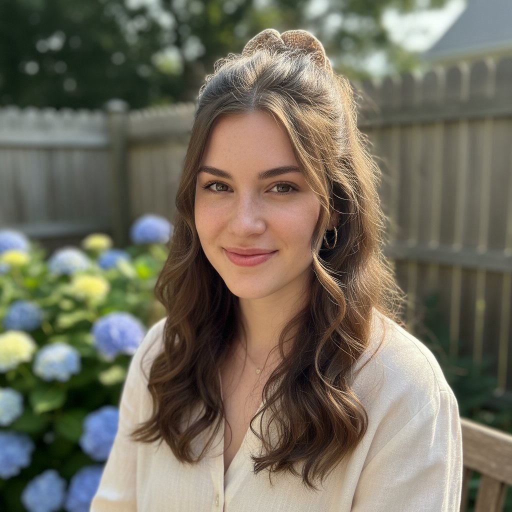 The half-up, half-down style with loose curls offers a breezy summer look, perfect for keeping your hair manageable and stylish.