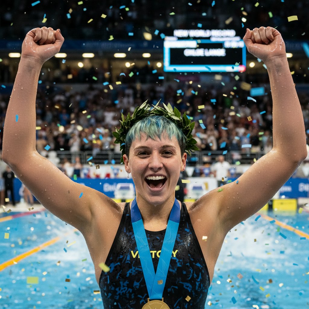 A pixie cut that’s both practical for the pool and chic for the podium, embodying the spirit of the competitive swimmer.