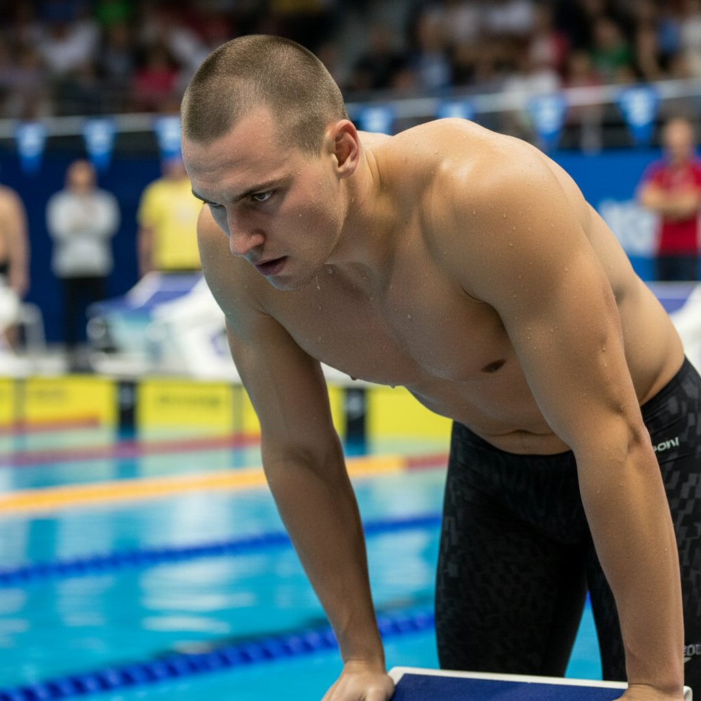 A buzz cut that offers ultimate ease and aerodynamics in the water, favored by swimmers for its low maintenance and high performance.